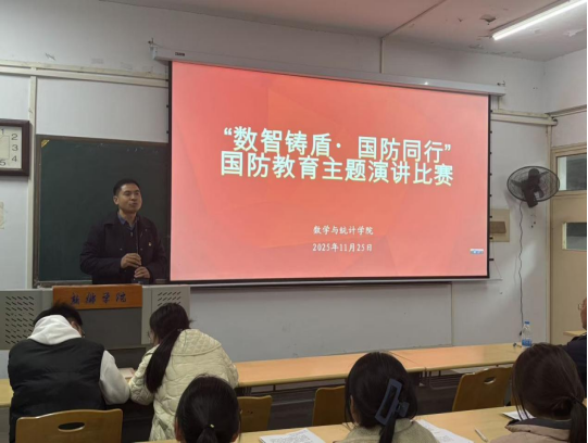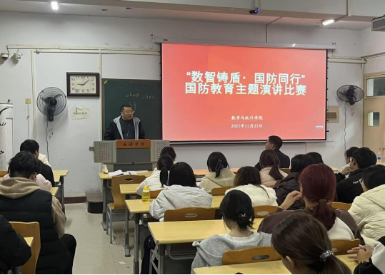 为提高学生国家安全意识,引导树立远大报国志向,激发投身国防建设的热忱,11月25日,数学与统计学院在A14-226开展“数智铸盾・国防同行”国防教育主题演讲比赛。数学与统计学院院长张之正、党委副书记兼纪委书记王仁举、学工办主任张泽潭、分团委书记陈立雪、全体辅导员和学生80余人参加活动。