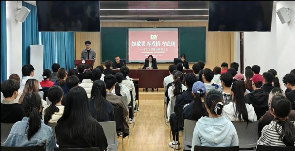 为进一步规范学生干部的日常行为,筑牢其廉洁自律的思想防线,打造一支公正透明、廉洁高效的学生干部工作队伍,引导学生干部树立正确的价值观与政绩观,我院于3月27日中午在A15 – 212会议室召开学生干部廉洁教育大会。学院党委副书记李彦霓、学工办主任黄琨、团委书记周慧以及全体学生干部参加了此次会议。会议由学生会主席姚广林主持。