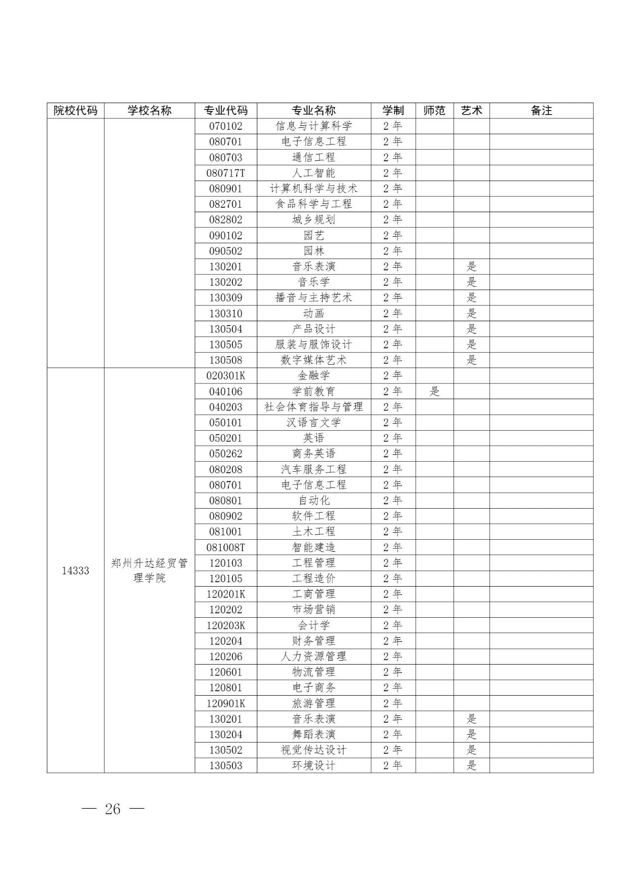 (一)招生高校和专业详见《河南省2026年普通高职(专科)毕业生进入本科阶段学习招生高校及专业总表》(附件1)。本、专科专业对照及考试课程,详见《本、专科专业对照及考试课程一览表》(附件2)。凡不符合《护士条例》规定的申请护士执业注册条件,且不能对照普通本科护理学专业、职业教育本科护理专业安排专升本考试的医学美容技术(原医疗美容技术)、呼吸治疗技术等专科专业,不得擅自安排招生。高校分专业招生计划另文下达。